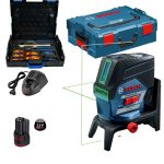 Križni laser Bosch GCL 2-50 CG RM2 BM3 univerzalni držač torbica ciljna ploča 12V baterija punjač Set gedora