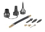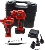 Praktični, akumulatorski kompresor s pumpom. Ima mnogo pribora za punjenje raznih predmeta na napuhavanje.