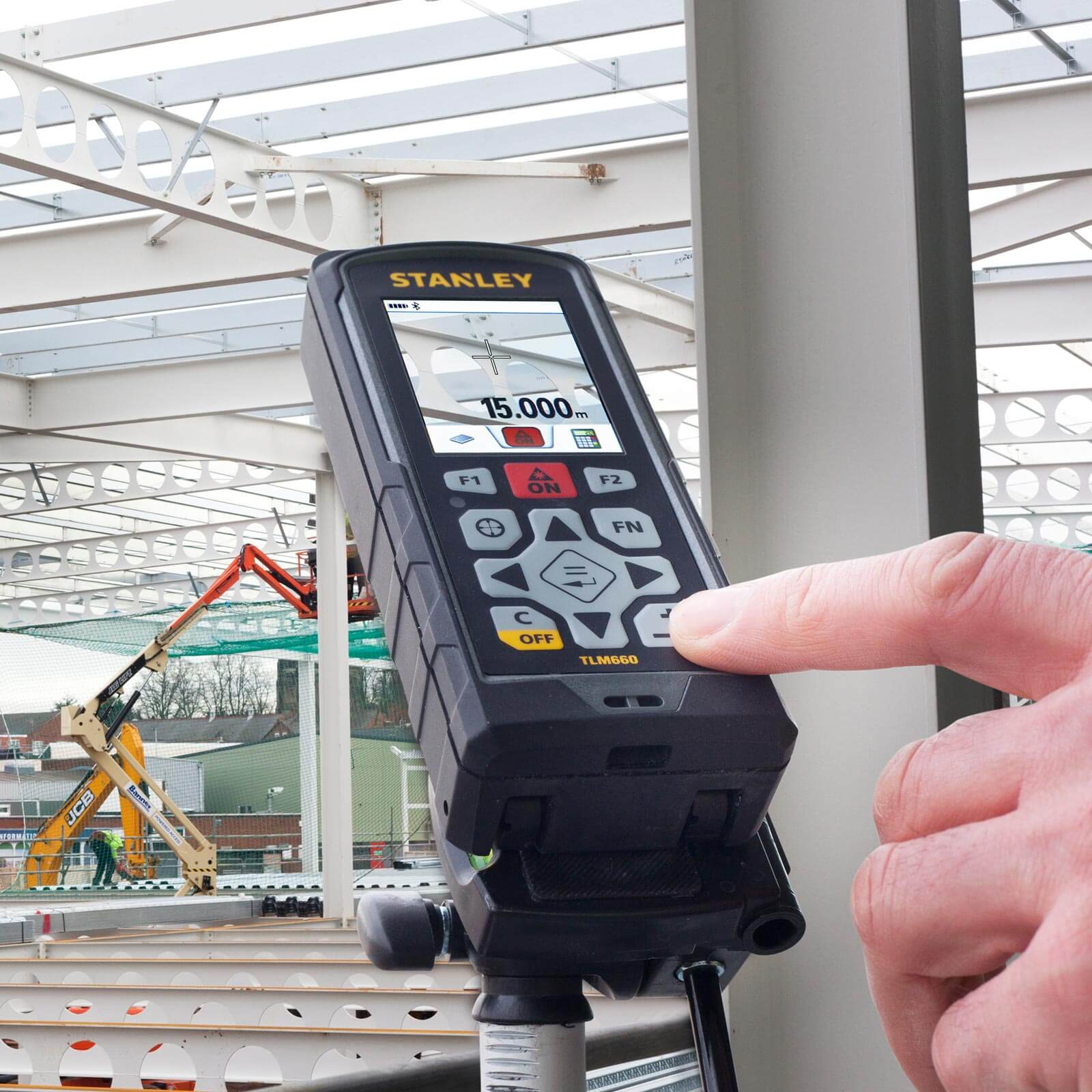 Novo u ponudi u novoj eri laserskih daljinomjera Uređaj se može koristiti s Bluetooth povezivanjem kako biste posligli osim brze i laserski preciznog mjerenja nego isti je moguće upariti ga s mobitelom (smartphone), tabletom ili nodbook uređajom. Nakon uparivanja uređaja a pomoću aplikacije Stanley Floor Plan, mjerenje i upis podataka postaje jednostavniji, točniji i brži. Dakle izmjerene dimenzije objekata ili prostorija možete direktno na gradilištu jednostavno unositi u precizne tlocrte koje