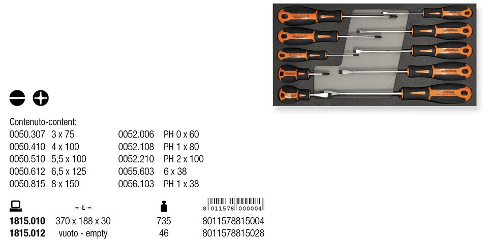 Modul za mehaničarski alat Mundial 1815.010, 370 x 188 x 30 sadrži odvijače: