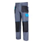 9 džepova, uključujući 6 s čičak trakom. Džep za mobitel. Trostruki šavovi. Podesiva širina struka s tipkama. Privjesak za ključeve. Petlja za čekić. Džepovi i džepovi sa jastucima za koljena ojačani tkaninom otpornom na abraziju (300D poliester).