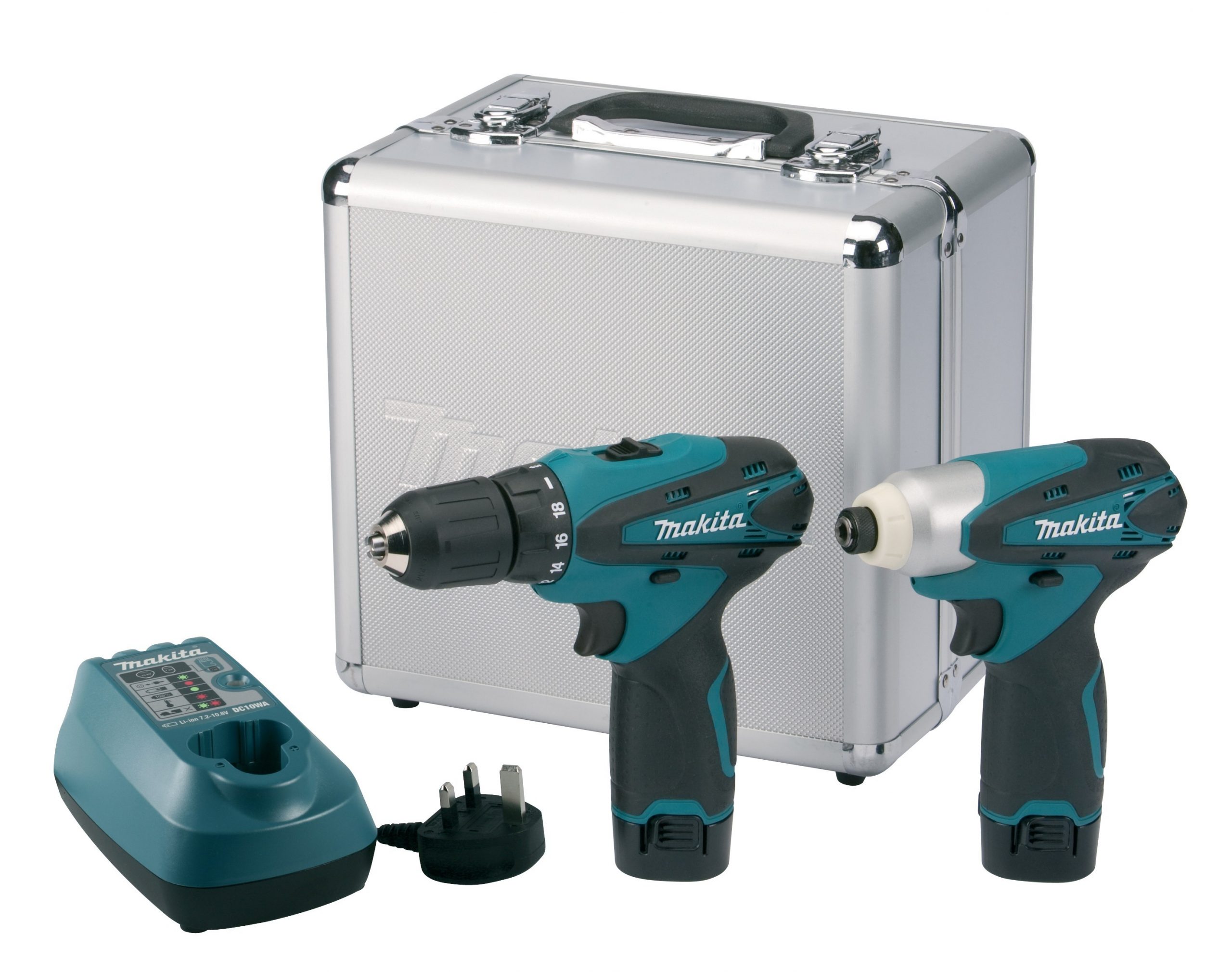 Set se sastoji od aku udarne bušilice i aku bušilice-odvijača sa dvije baterije 10,8V/1,3ah, punjačem i koferom