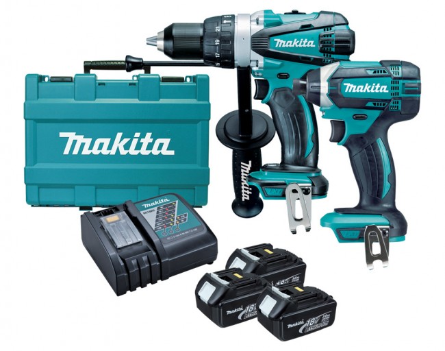 Set akumulatorskih alata koji sadrži udarna bušilica DHP458Z, udarni odvijač DTD152, 3 kom Li-ion akumulatora 18V 3,0Ah, punjač.