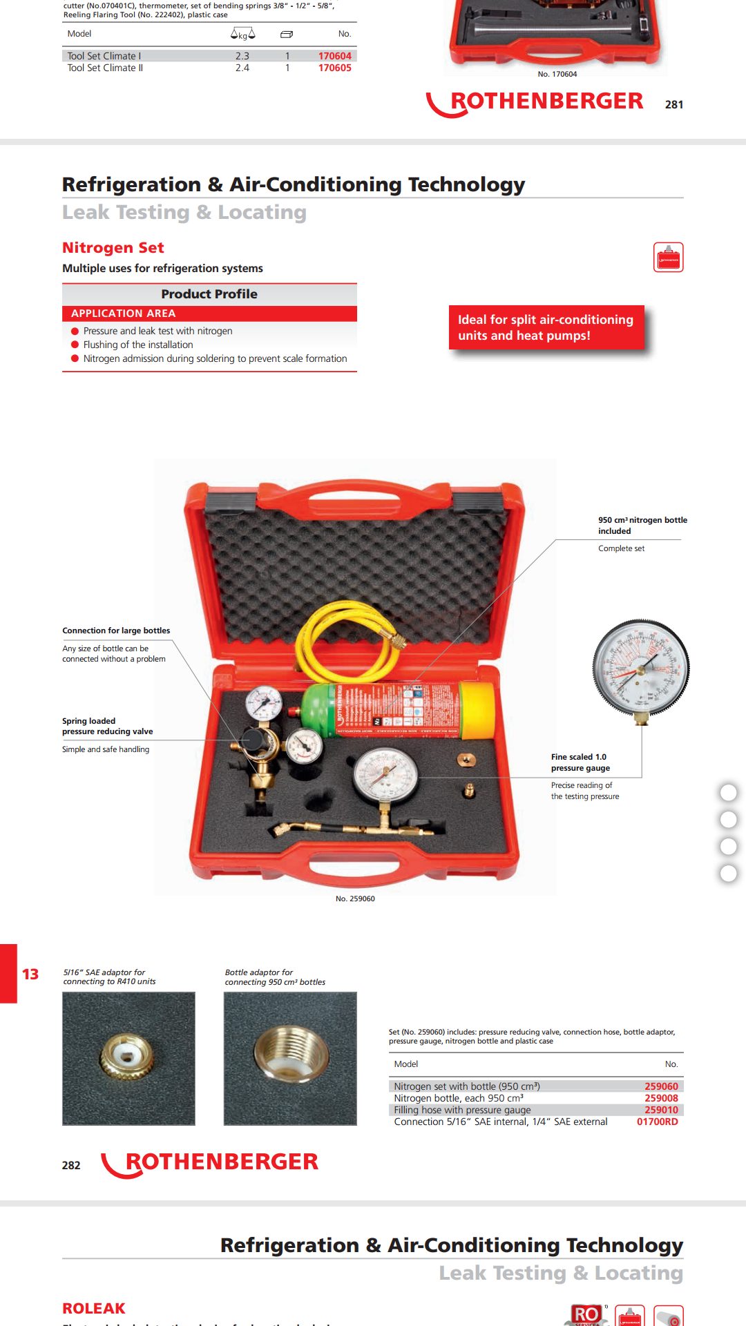 Set za ispitivanje klima instalacija dušikom Rothenberger 259060 korite montažeri klima uređaja za tlačno ispitivanje.