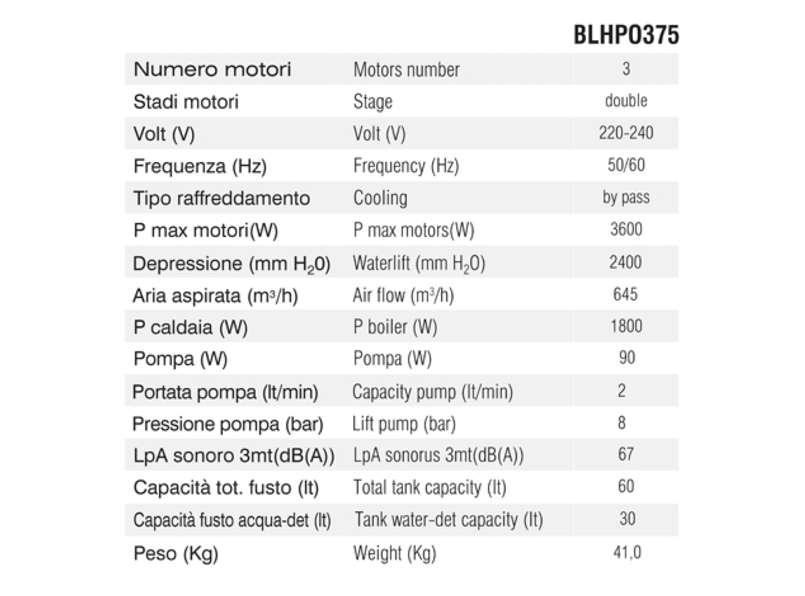 Usisavač je namjenjenen za čišćenje velikih tekstilnih i glatkih površina, tepiha, industrijskih podova, zamašćenih i zaprljanih tvrdokornim mrjama. Konstruiran je za korištenje uz pomoć 1-3 motora. Spremnik je izrađen od nehrđajućeg čelika. Boiler snage 1.8kW smještena je u posebno kućište na dnu stroja, koji može dati temperaturu vode do 90°C u kontinuiranom radu. Rotacijska pumpa snage 90W osigurava tlak od 8 bara za ubrizgavanja vode, kapacitet pumpe 2 litre. Kapacitet spremnika vode od 30 litara načinjen je od nehrđajućeg čelika čine ovaj stroj idealnim partnerom za intenzivnu profesionalnu uporabu.