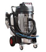 Robusni trofazni industrijski usisivač s velikim spremnikom i čvrstim postoljem kao zaštitom od lomova. Zahvaljujući gumiranim kotačima olakšano je kretanje usisavača. Uređaj je dobro izbalansiran za lagani transport.