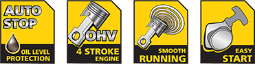 Ručni stroj za popločavanje. Sklopivi kotačići. Automatsko zaustavljanje ulja. Bez spremnika za vodu. Bez transportnih kotača.