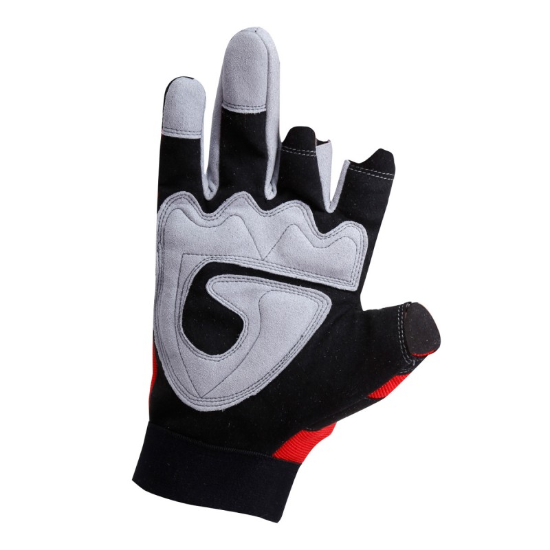Mekana podloga na dijelu rukohvata štiti od kurjih očiju i vibracija. Vrh rukavice izrađen od fleksibilnog elastana, sprječava znojenje ruku i osigurava savršeno pristajanje. Otvoreni vrhovi prstiju nude visoku ručnu spretnost, omogućujući korisniku izvršavanje visoko preciznih radova i osjetiti držanje predmeta. Umeci na vrhovima srednjih prstiju olakšavaju uklanjanje rukavice. Elastična manžeta s čičak trakom osigurava udobnost